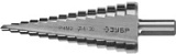 Сверло ЗУБР ступенчатое по сталям и цвет. мет. ст. Р6М5, d=4- 39мм, 14ступ. d=4-39, L -113 мм, трехг