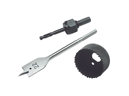Изготовлен из углеродистой стали. Предназначен для установки дверных замков с посадочными диаметрами ручки 54 мм и щеколдой диаметром 22 мм. Комплектация: 70494 – коронка 54 мм с направляющим сверлом, перовое сверло 22 мм