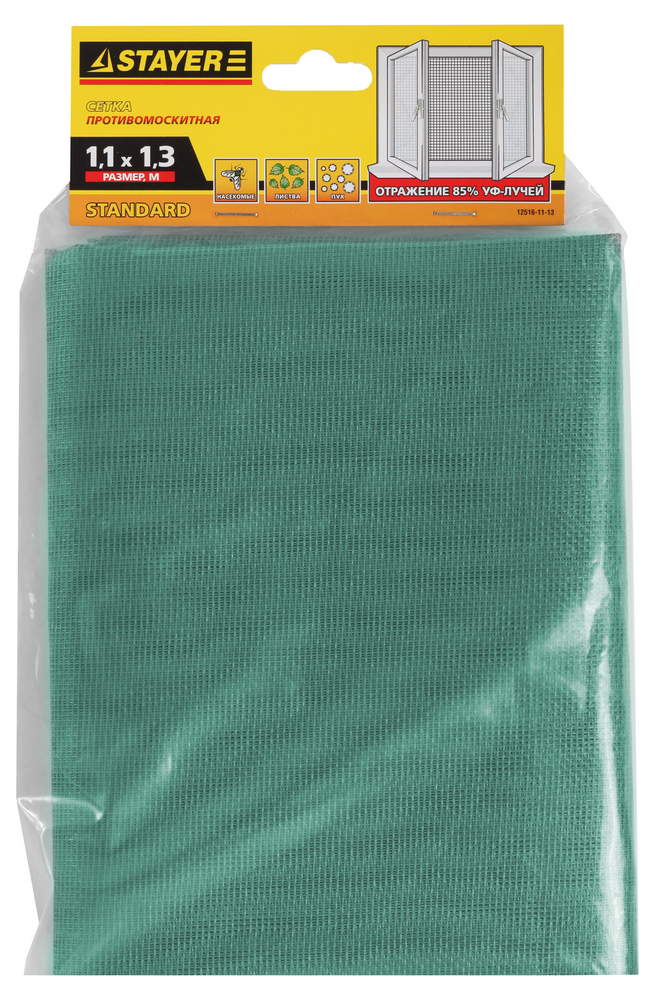 Сетка STAYER "STANDARD" противомоск. для окон, в индивид. упак, стекловолокно+ПВХ, зеленая, 1,1х1,3м - 12517-11-13