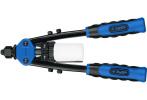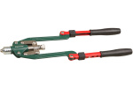Заклепочник выполняется в литом корпусе, что обеспечивает высокую прочность инструмента. Для повышения комфорта при работе на ручках установлены пластиковые накладки, обеспечивающие комфортный хват, простоту выполнения операций. Такие ручки заклепочника являются неоспоримым преимуществом.