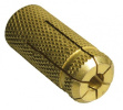 Анкер латунный цанговый — крепежное изделие, используемое для монтажа легких подвесных систем, полок, карнизов, осветительных приборов и т.п. Это цилиндрический элемент с внутренней метрической резьбой, которая сходит на конус, зоной распорки. Снаружи выполнены насечки для защиты цанги от проворота.