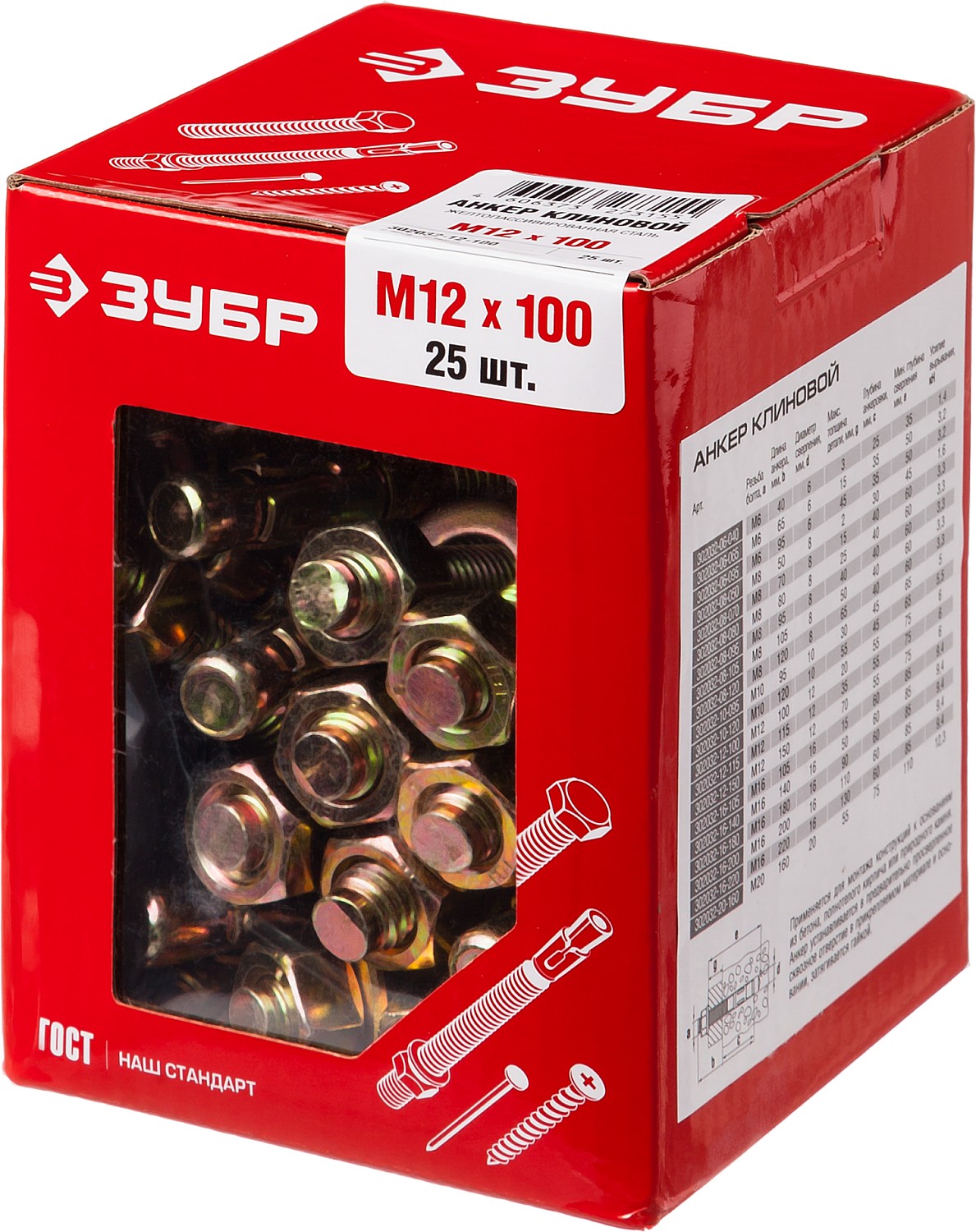 Анкер клиновой, М12 x 100 мм, 25 шт, желтопассивированный, ЗУБР - 302032-12-100
