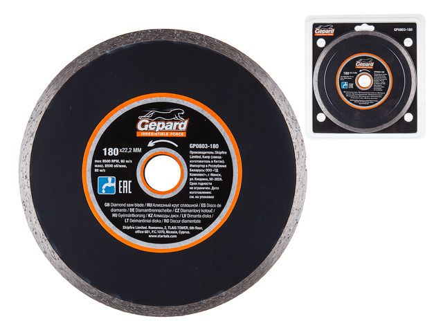 Алмазный круг 180х22 мм по керамике сплошн. GEPARD - GP0803-180