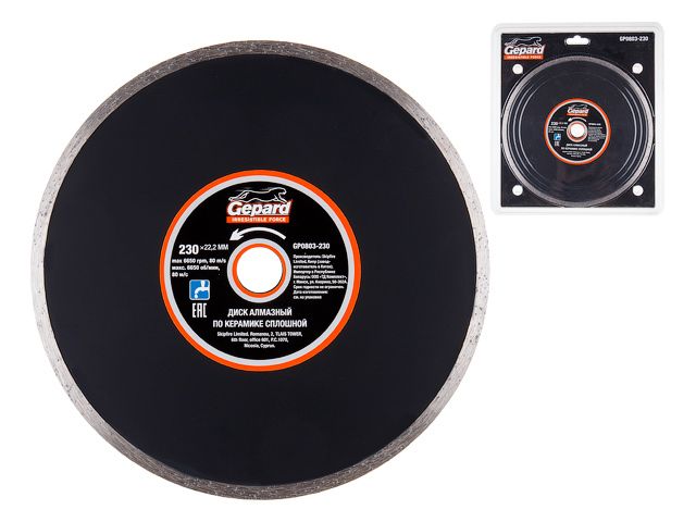 Алмазный круг 230х22 мм по керамике сплошн. GEPARD - GP0803-230
