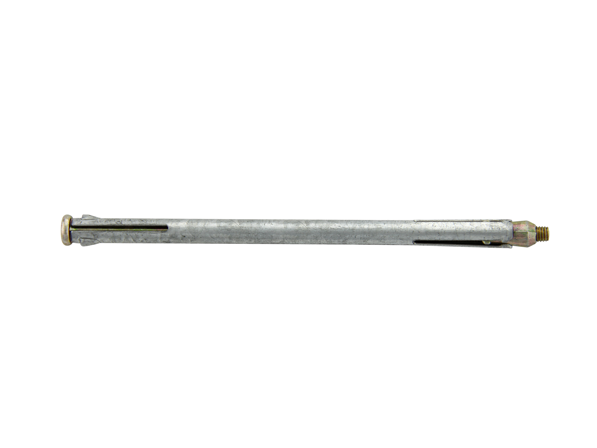 Металлический рамный анкер состоит из стальной разрезанной втулки, винта со шлицем PZ 3, позволяющим выдерживать нагрузки на срез, и конусной гайки. Расклинивание и фиксация анкера происходит сначала в основании, и уже затем - в прикрепляемом материале.