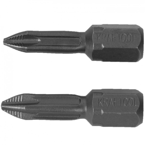 Биты торсионные кованые, PH1, 25мм 2шт, обточенные, Cr-Mo сталь, хвост E 1/4" KRAFTOOL "ЕХPERT" - 26121-1-25-2