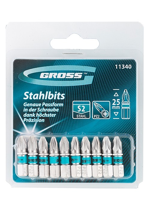 Биты PZ2х25, сталь S2, 10шт //GROSS - 11340