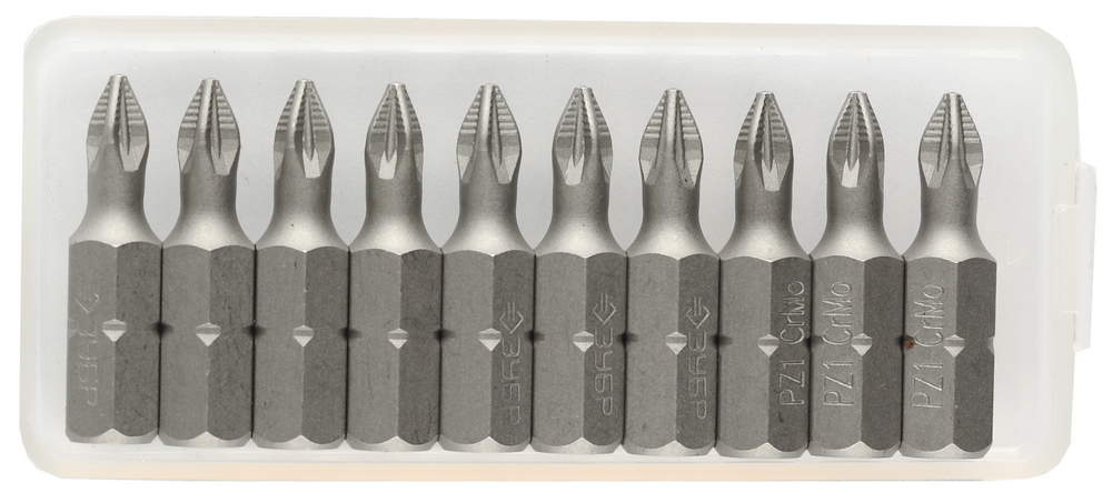 Биты кованые, PZ1, 25мм, 10шт хромомолибденовая сталь, тип хвостовика C 1/4", ЗУБР "МАСТЕР" - 26003-1-25-10