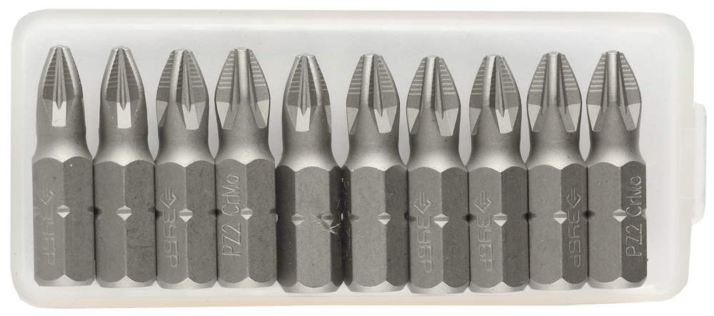 Биты кованые, PZ2, 25мм, 10шт хромомолибденовая сталь, тип хвостовика C 1/4", ЗУБР "МАСТЕР" - 26003-2-25-10