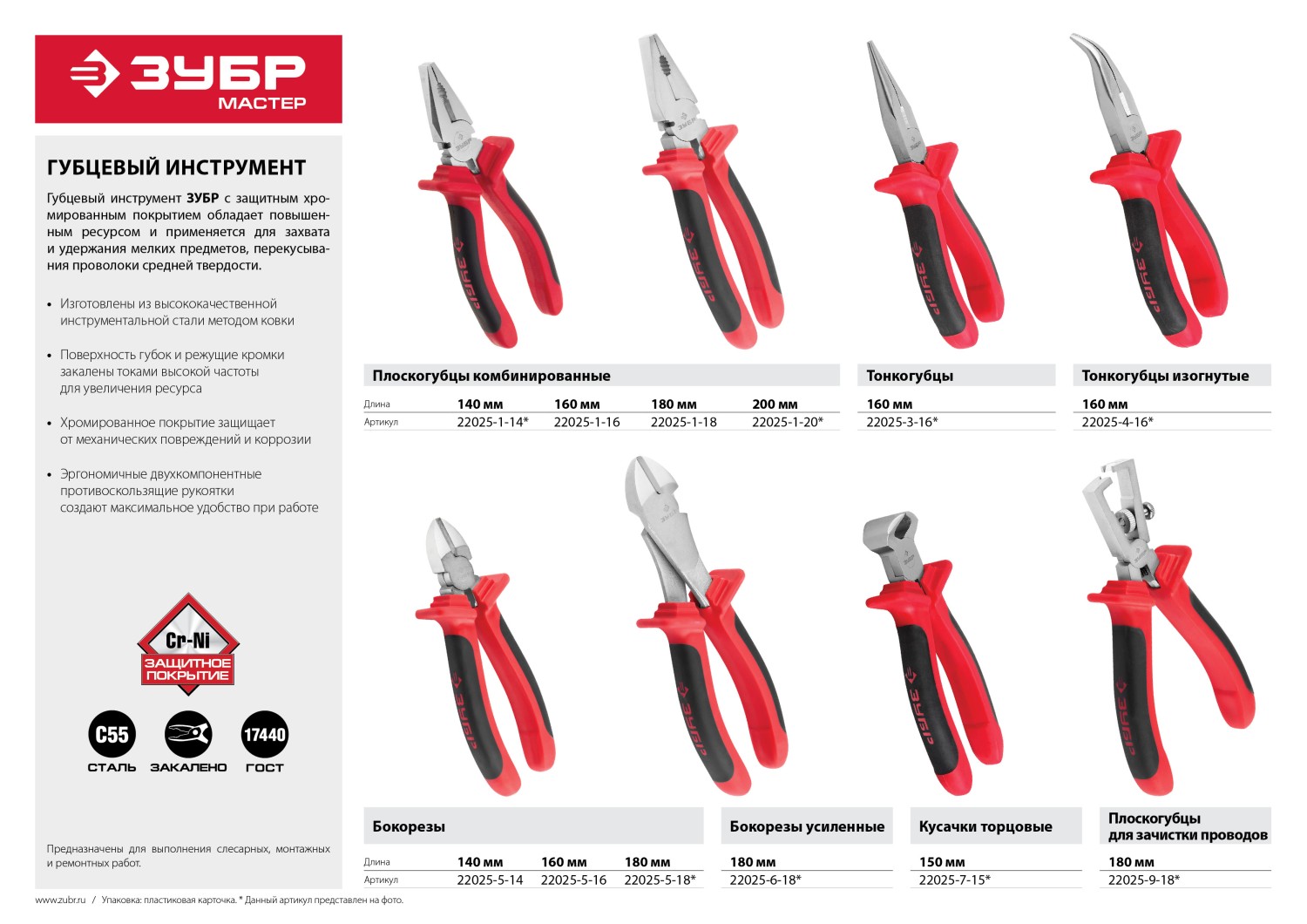Бокорезы ЗУБР "МАСТЕР" хромированные, 160мм - 22025-5-16