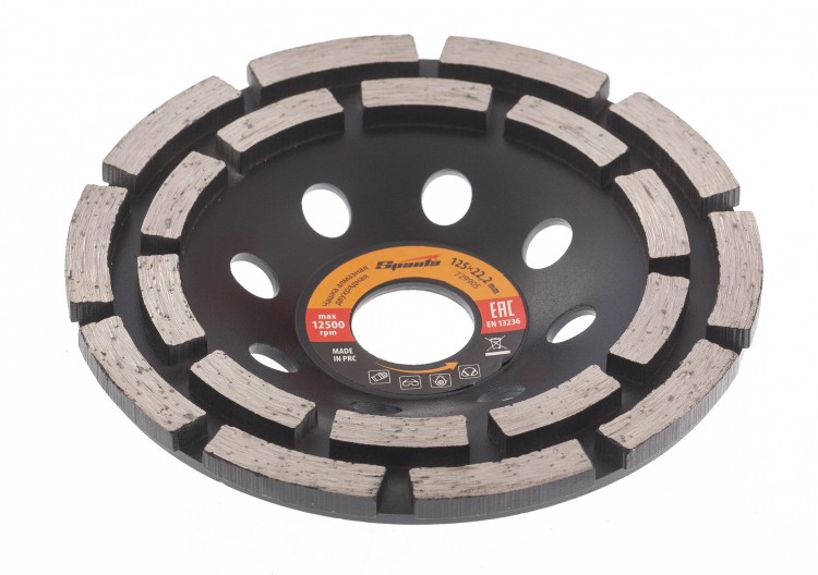 Чашка алмазная "Двухрядная" ТМ SPARTA предназначена для шлифования камня, бетона, мрамора, гранита, кирпича.
