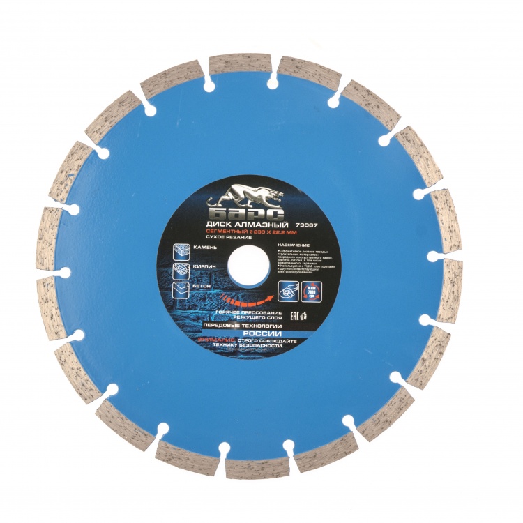 Диск алмазный Сегментный ф230х22,2мм, сухое резание // БАРС - 73067