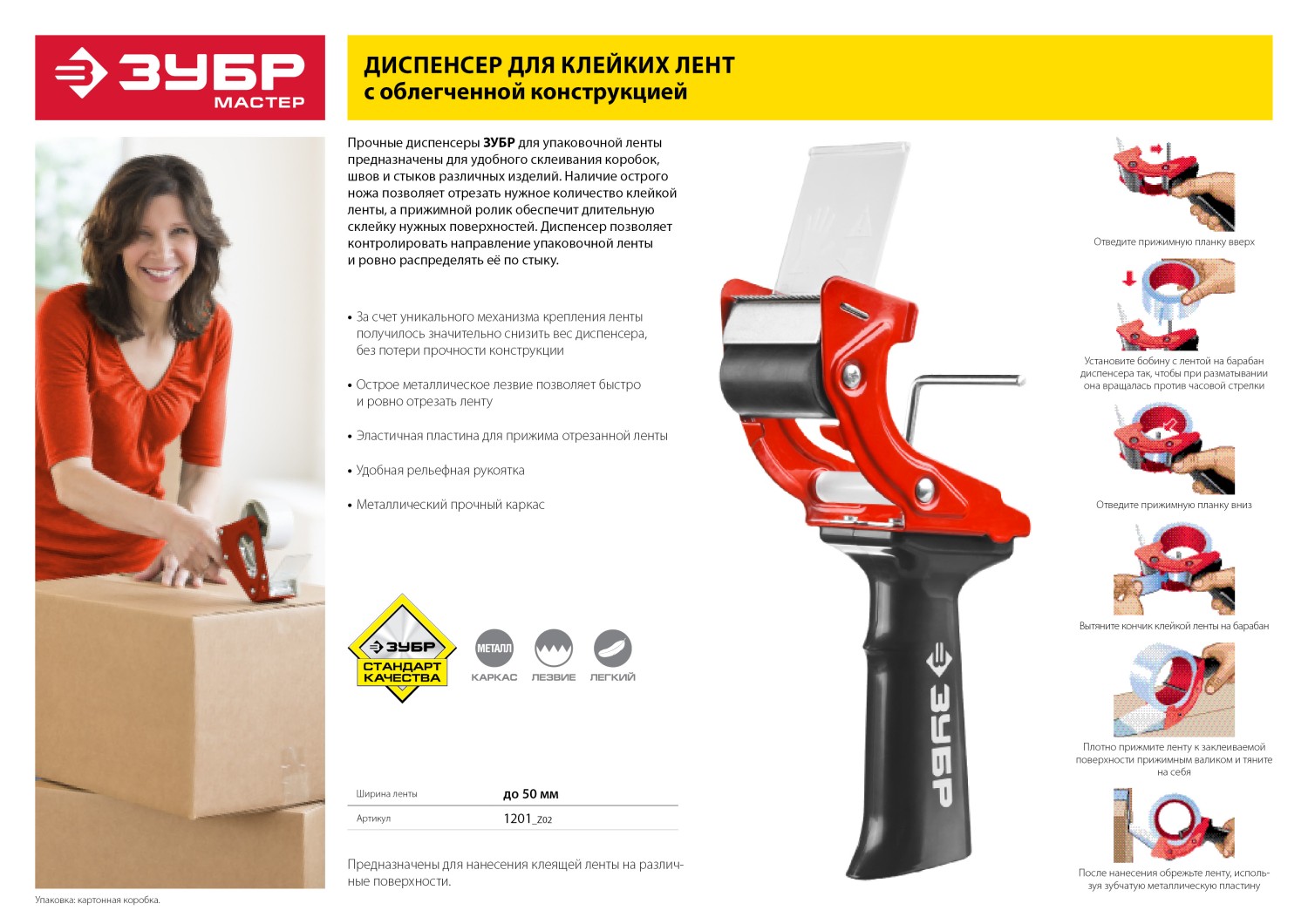 Диспенсер для клейких лент ЗУБР "МАСТЕР", до 50мм - 1201_z02