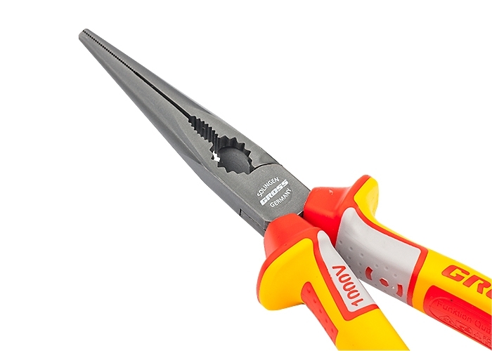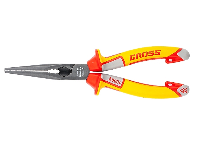 Длинногубцы прямые, диэлектрические рукоятки до 1000 В, трехкомпонентные рукоятки, 205 мм// GROSS - 17177