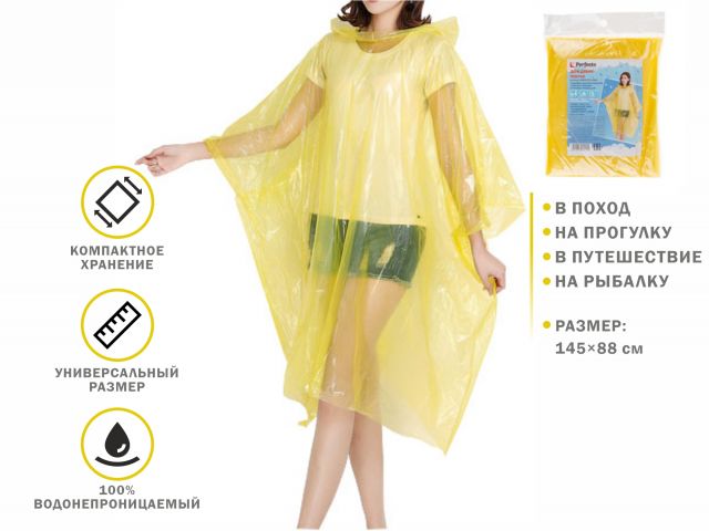 Дождевик-пончо, желтый, PERFECTO LINEA - 28-102002