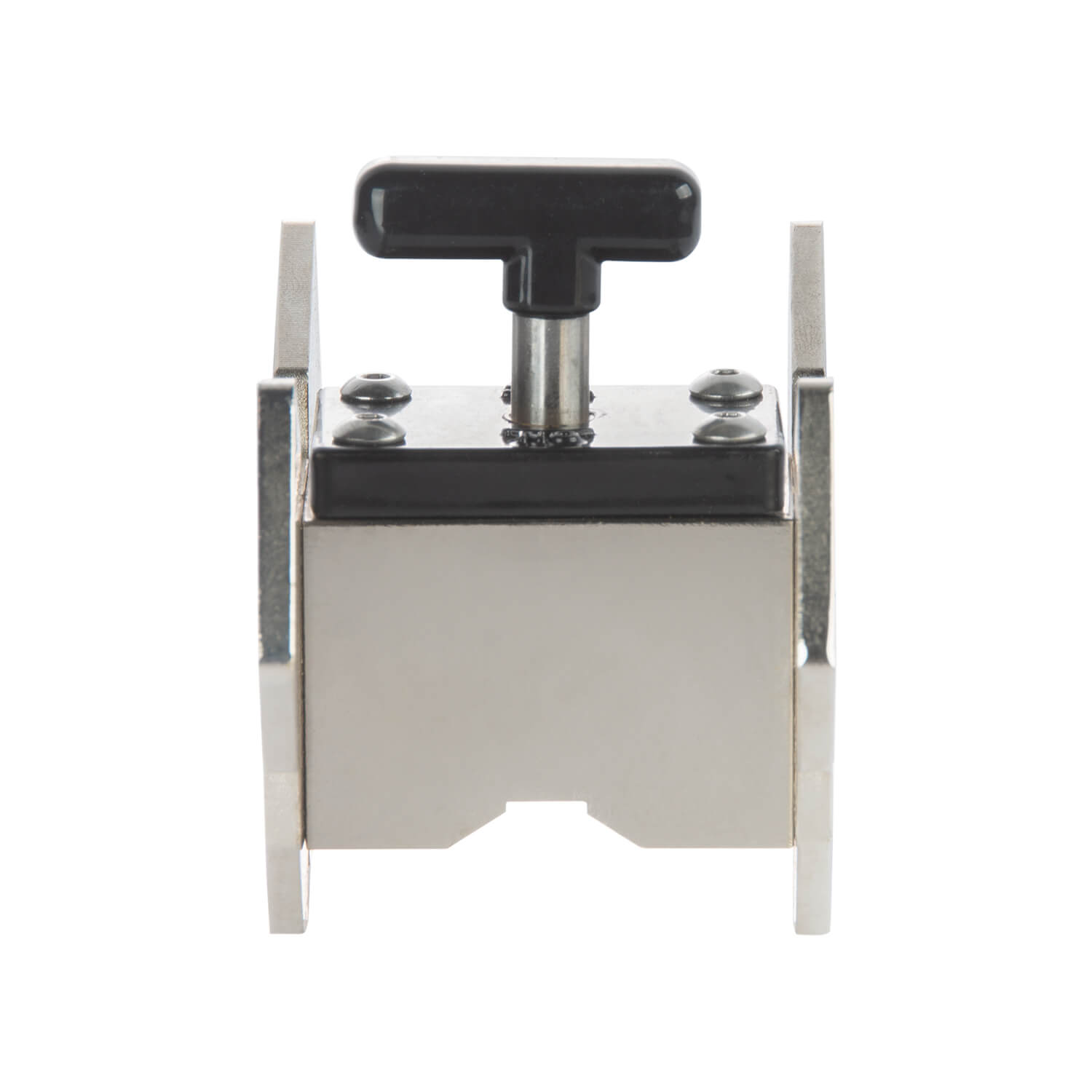 Фиксатор МФО-7132-1 из линейки MULTI ANGLE обеспечивает 100% безотказное срабатывание магнита при включении и выключении. Магнит расположен внутри конструкции, что обеспечивает его чистоту от металлической стружки и других загрязнений. Переключение магнита происходит за счет поворота удобной ручки вкл/выкл. Максимальная масса удерживаемого изделия составляет 60 кг.