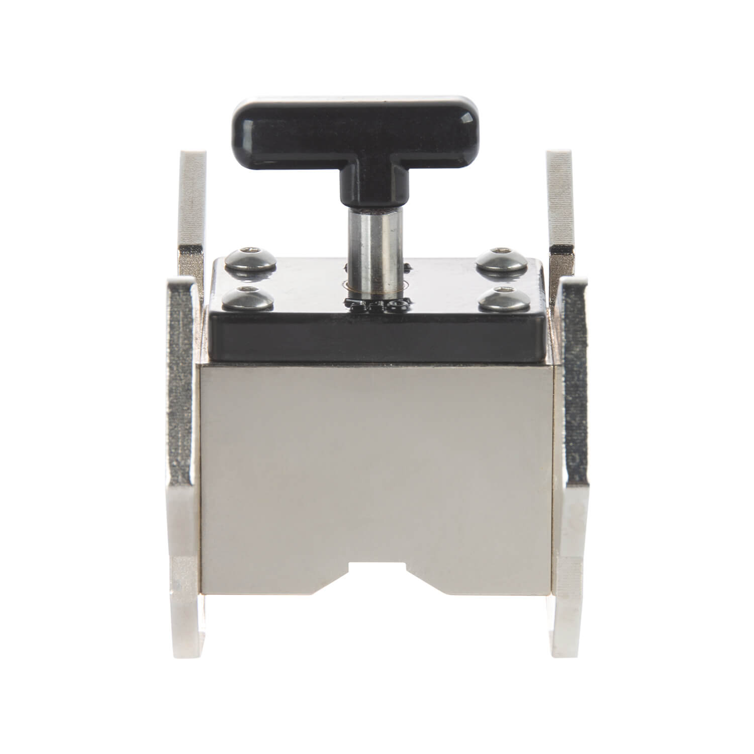 Фиксатор МФО-7132-2 из линейки MULTI ANGLE обеспечивает 100% безотказное срабатывание магнита при включении и выключении. Магнит расположен внутри конструкции, что обеспечивает его чистоту от металлической стружки и других загрязнений. Переключение магнита происходит за счет поворота удобной ручки вкл/выкл. Максимальная масса удерживаемого изделия составляет 60 кг.