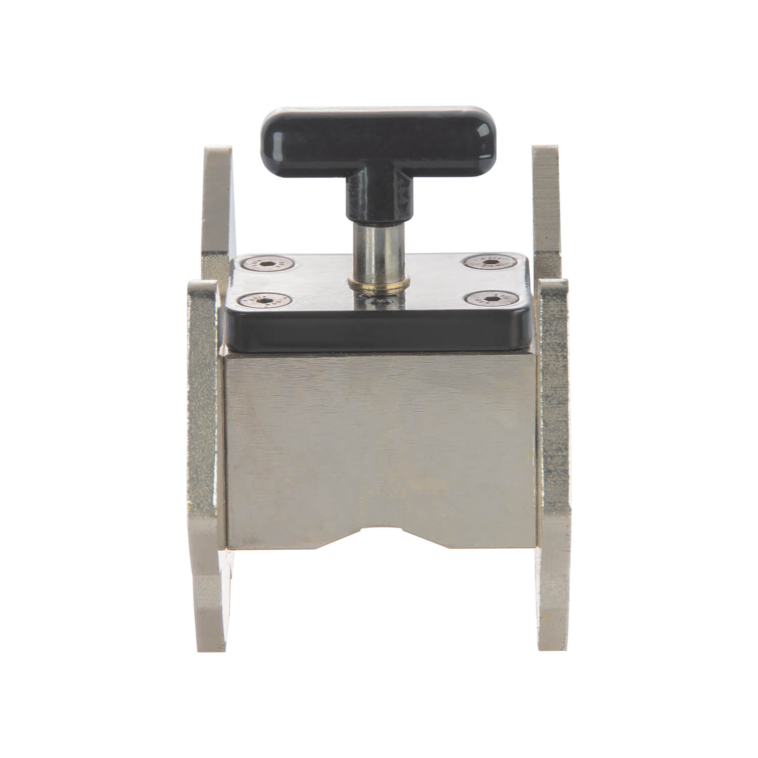 Фиксатор МФО-7265-1 из линейки MULTI ANGLE обеспечивает 100% безотказное срабатывание магнита при включении и выключении. Магнит расположен внутри конструкции, что обеспечивает его чистоту от металлической стружки и других загрязнений. Переключение магнита происходит за счет поворота удобной ручки вкл/выкл. Максимальная масса удерживаемого изделия составляет 120 кг.