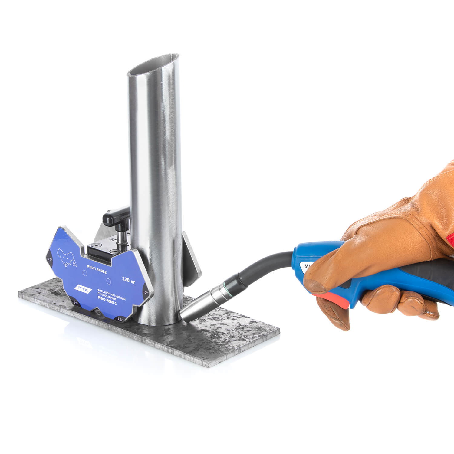 Магнитный фиксатор позволяет производить точное выставление углов в процессе сварки, пайки и монтаже конструкций под 7 разными углами – 45°, 60°, 75°, 90°, 105°, 120°, 135°.