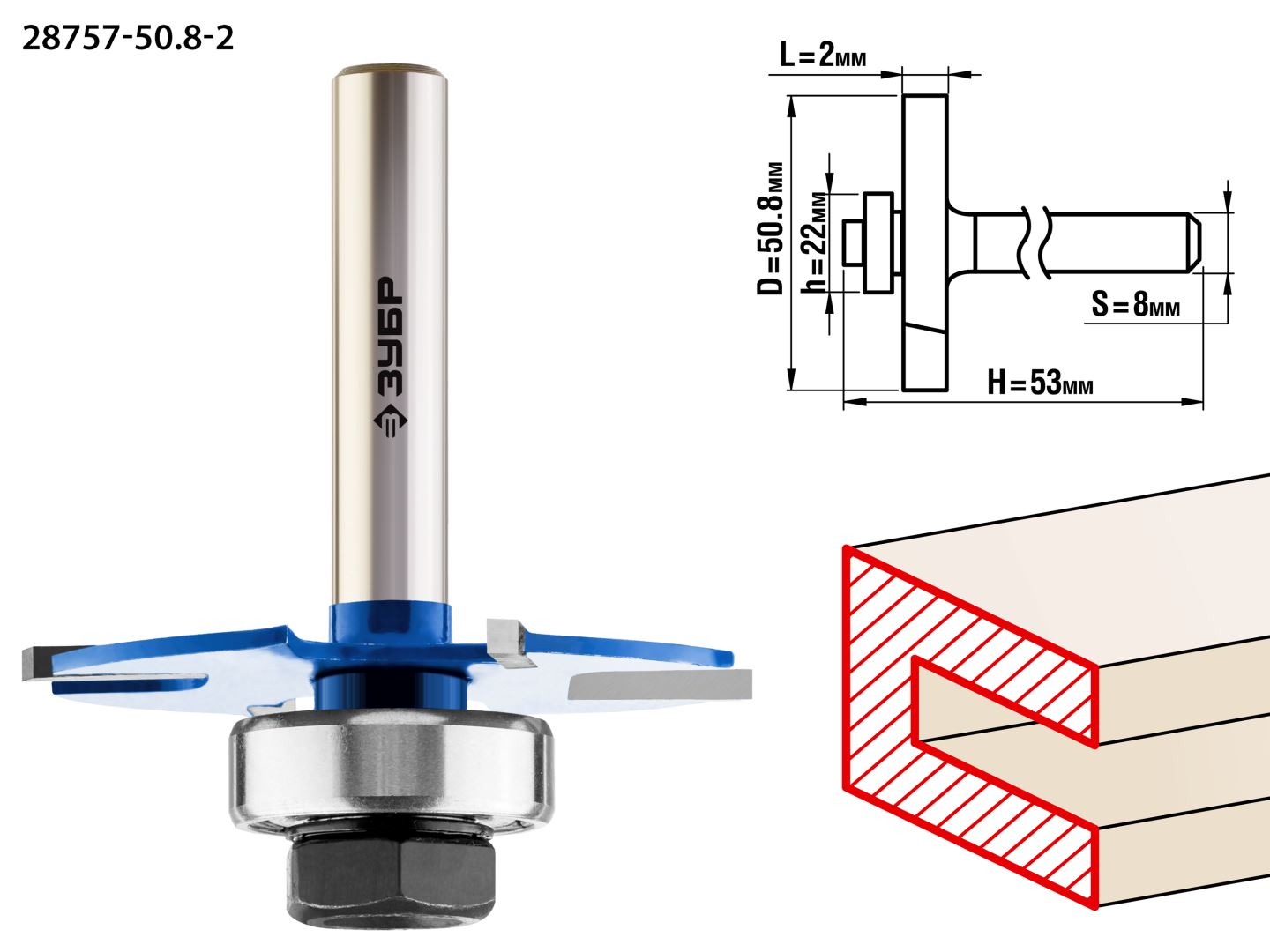 Фреза горизонтально-пазовая, D= 50,8мм, высота-2мм, хв.-8мм, d-22мм, ЗУБР Профессионал - 28757-50.8-2