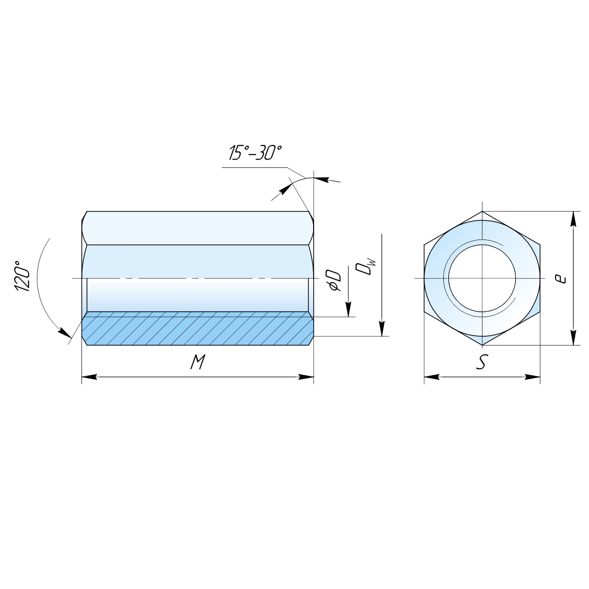 Благодаря удлиненной форме гайки переходные используются для наращивания длины шпилек, болтов или винтов;