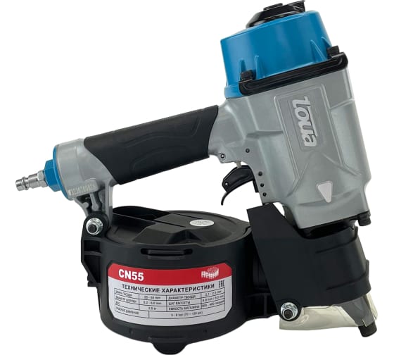 Toua CN55 гвоздезабивной пневматический пистолет барабанного типа работает сгладкими, ершеными и винтовыми гвоздями, соединенными между собой проволокой. Обладает высокой производительностью, большим ресурсом и низкой стоимостью точки крепления. Подходит для работ на производстве и конвейерной сборки.