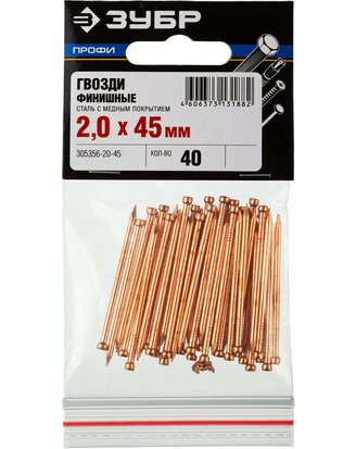 Гвозди ЗУБР "ПРОФИ" финишные, омедненные, 1,8х40мм, 40шт - 305356-18-40
