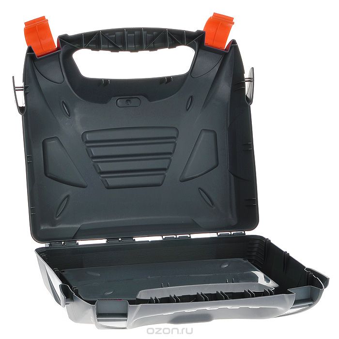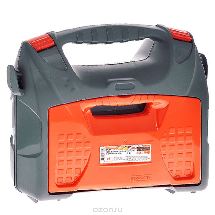 Оптимальная форма для размещения большинства известных домашних электроинструментов: дрели, угловой шлифовальной машины (болгарки), электролобзика, шуруповерта и т.д. со съемным органайзером для сверел и буров. Функциональный кейс оригинального дизайна имеет эргономичную ручку, боковые зацепы для наплечного ремня.