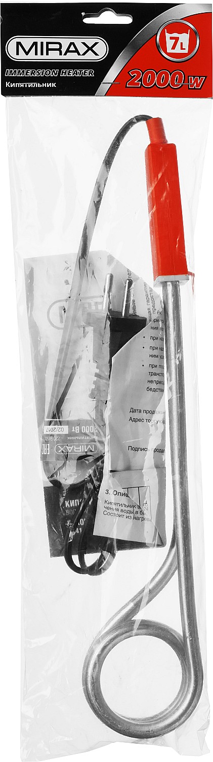Кипятильник MIRAX 55418-20, предназначен для нагревания и кипячения воды в бытовых условиях. Кипятильник с надежным спиральным нагревательным элементом и термостойкой рукояткой для нагрева воды в бытовых условиях. Идеально подходит для путешествий благодаря компактному размеру и небольшому весу. Кипятильники торговой марки MIRAX изготовлены из качественных материалов, функциональны и обладают наилучшим соотношением качества и цены.