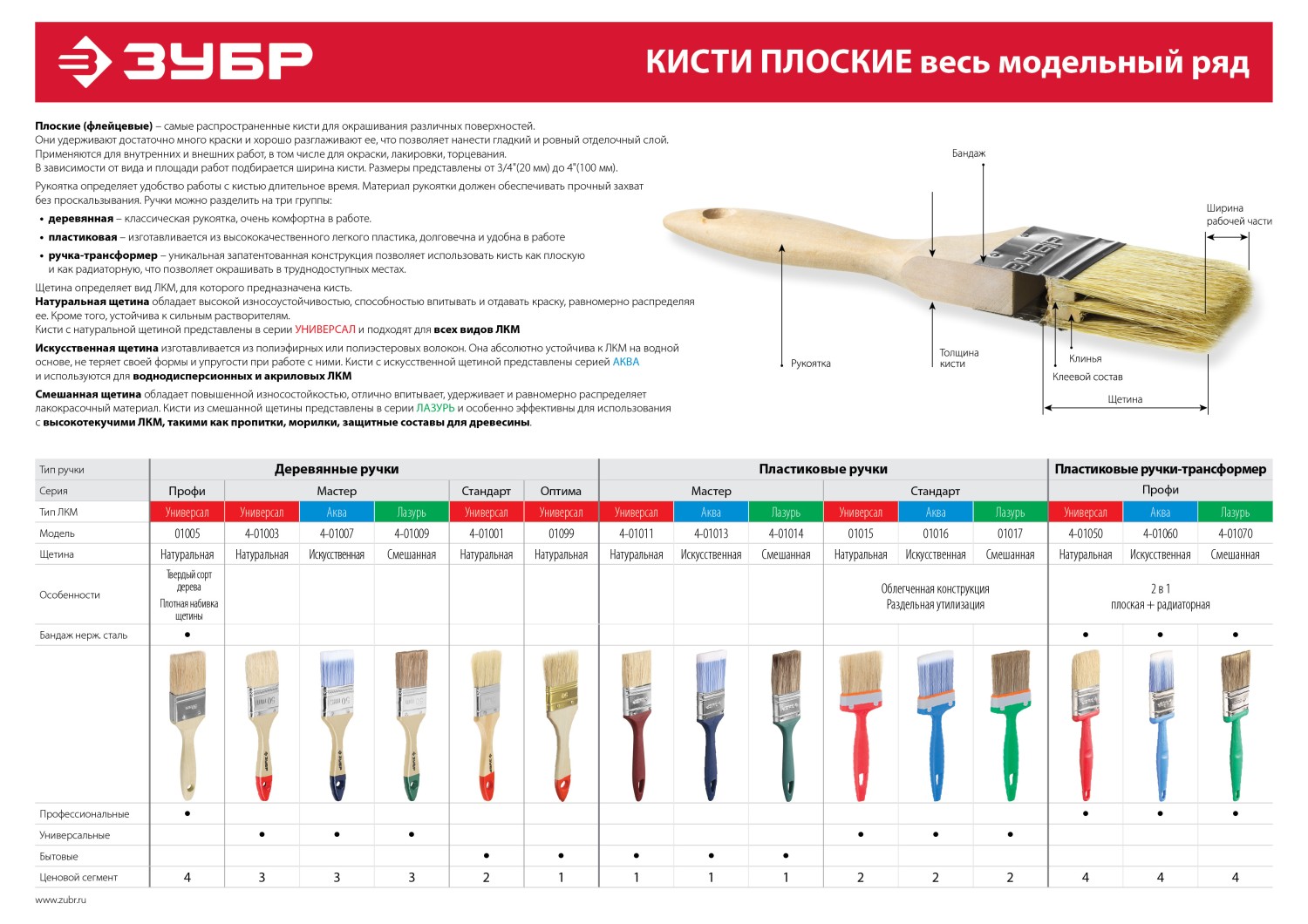 Кисть плоская "ЛАЗУРЬ-МАСТЕР", смешанная щетина, деревянная ручка, 25мм ЗУБР (12 шт) - 4-01009-025