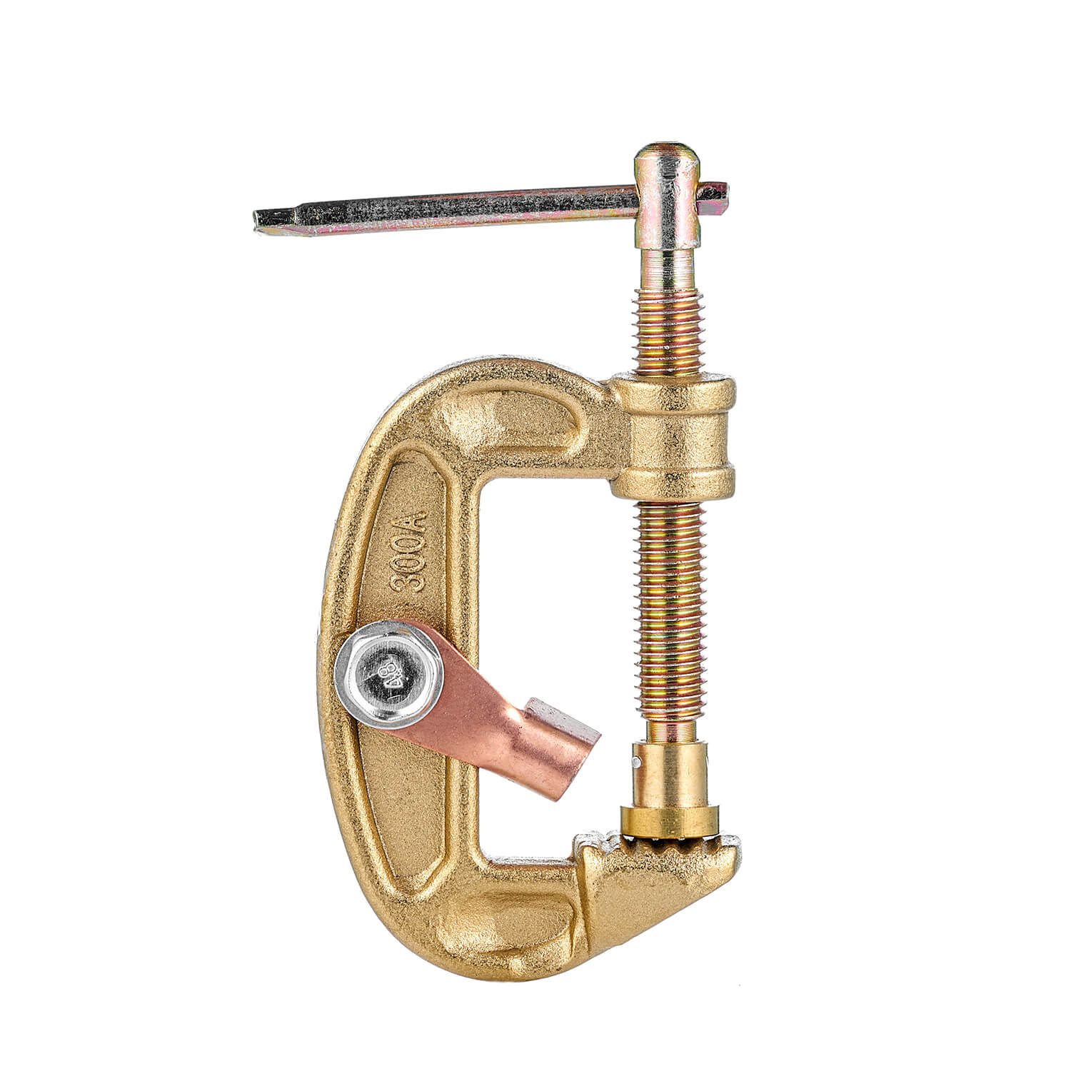 Клемма заземления КЗ-33 рассчитана на сварочный ток до 300 Ампер. Гарантирует плотный контакт в месте подключения. Струбцина состоит из G-образного основания с креплением под кабель и винтового контактного упора. Резьба на винтовом контактном упоре струбцины 12 мм. Ширина губок составляет 15 мм.