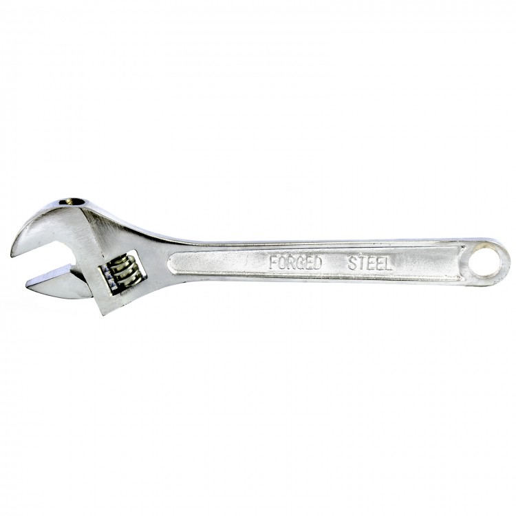 Ключ рожковый разводной изготовлен из инструментальной стали и подвергнут селективной закалке. Встроенный в тело ключа червячно-винтовой механизм защищен от коррозии. Ключ предназначен для монтажа и демонтажа резьбовых соединений с широким диапазоном размеров крепежа.