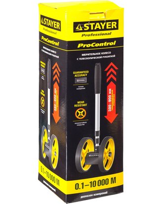 Телескопическая рукотяка облегчает использование колеса, а также позволяет сэкономить место при хранении и транспортировке. Два колеса обеспечивают точное позиционирование на поверхности.Мерительное колесо STAYER -применяется для измерения больших расстояний при строительных работах, работах по прокладке кабелей, работах по землеустройству и незаменимо при составлении схем ДТП.-Количество колес: 2 шт