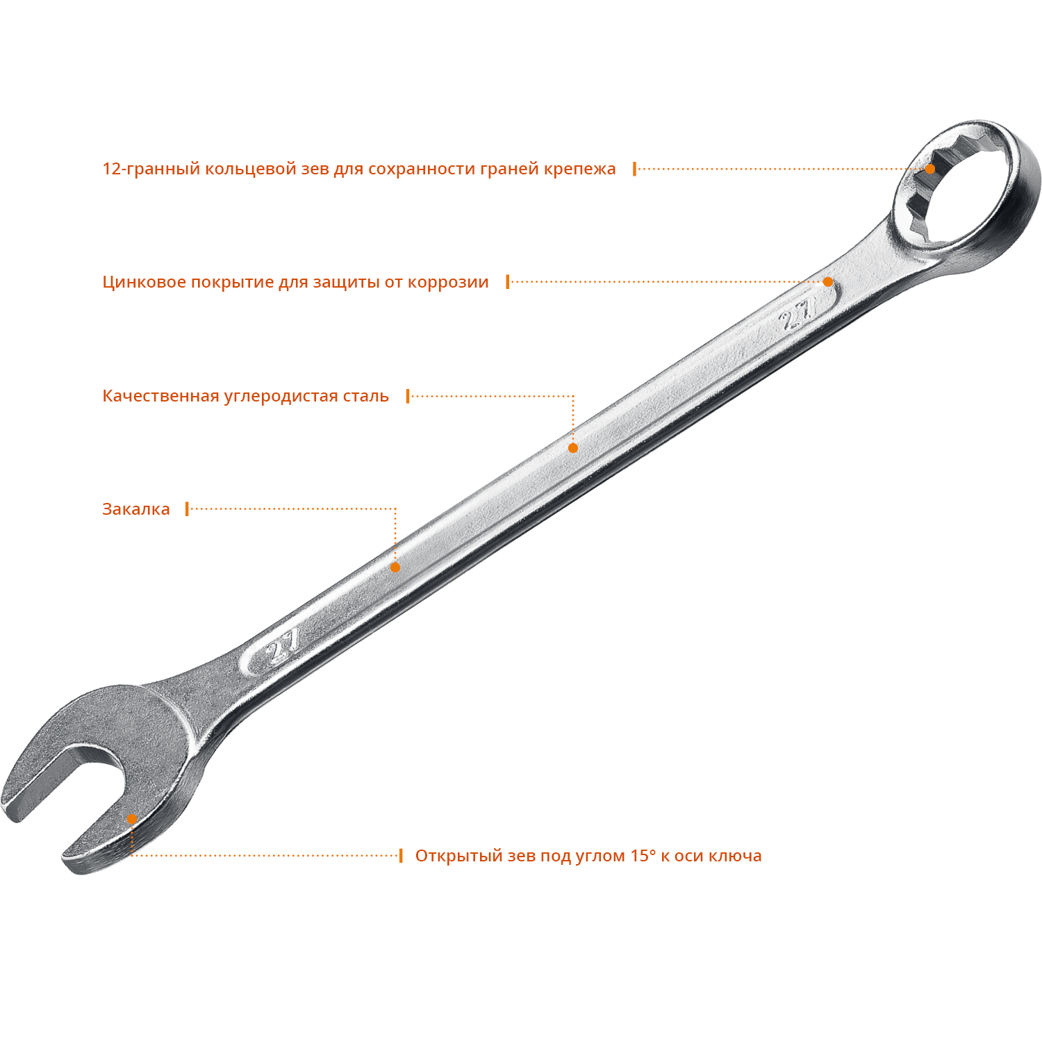 Комбинированный гаечный ключ СИБИН 27089-27, применяется для работ с шестигранным крепежом. Углеродистая сталь. Закалено. Кованый ключ из качественной стали изготовлен в соотвествии с международными и российскими стандартами стандартами.