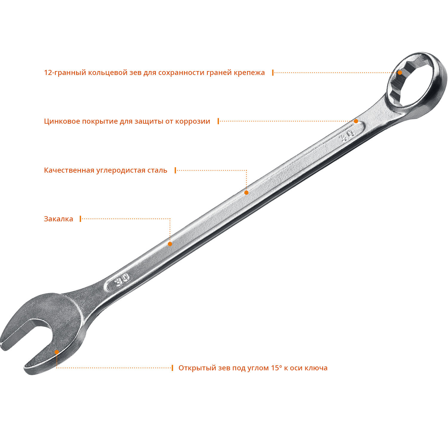 Комбинированный гаечный ключ СИБИН 27089-30, применяется для работ с шестигранным крепежом. Углеродистая сталь. Закалено. Кованый ключ из качественной стали изготовлен в соотвествии с международными и российскими стандартами стандартами.