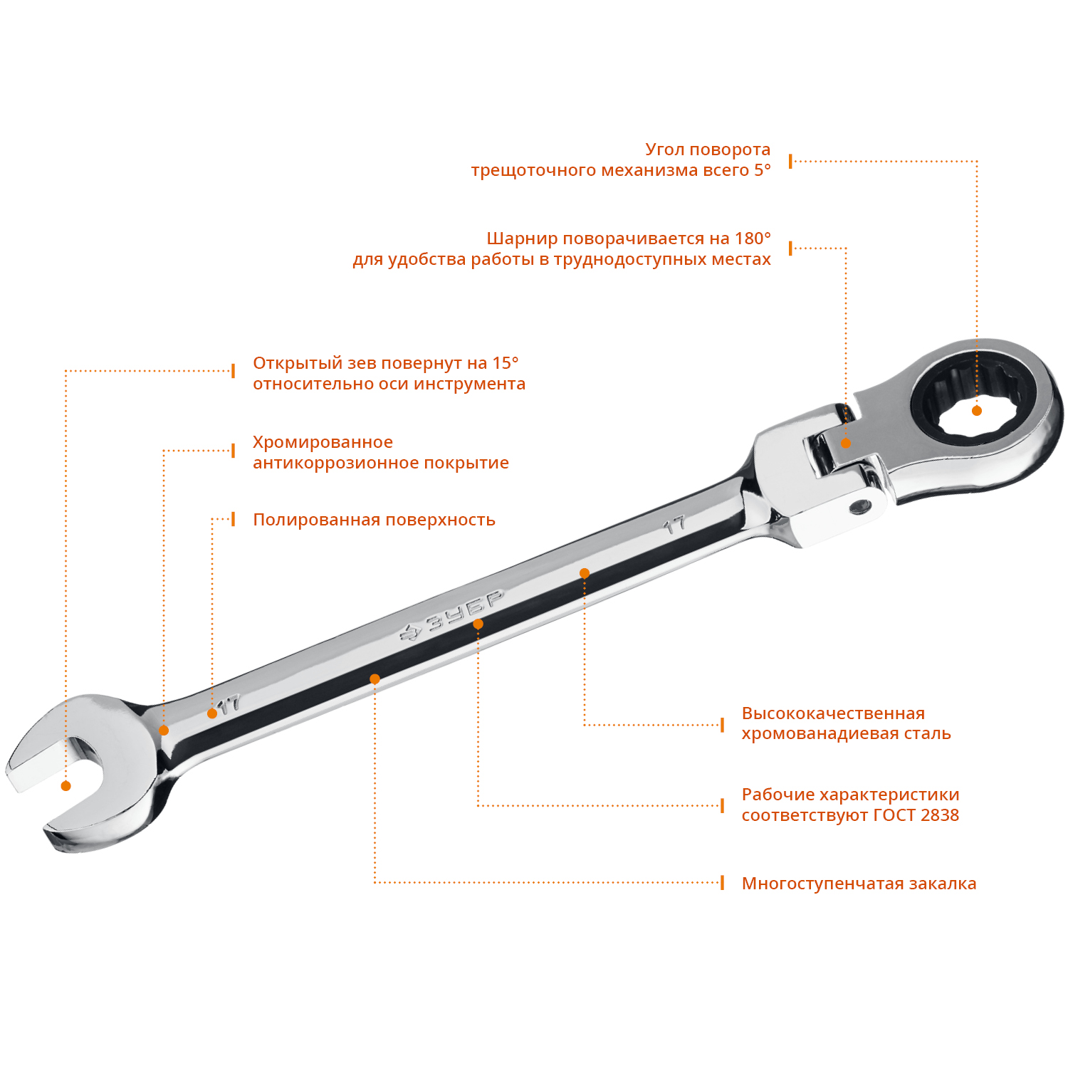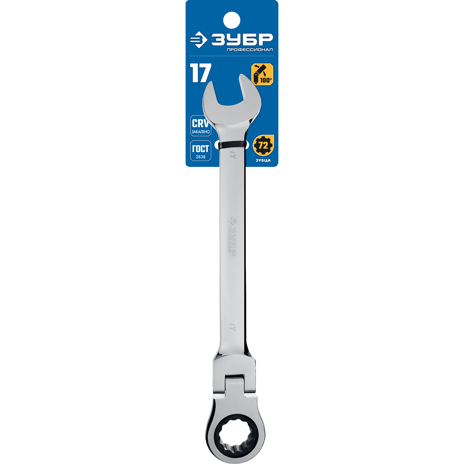 Комбинированный гаечный ключ трещоточный шарнирный 17 мм, ЗУБР - 27101-17
