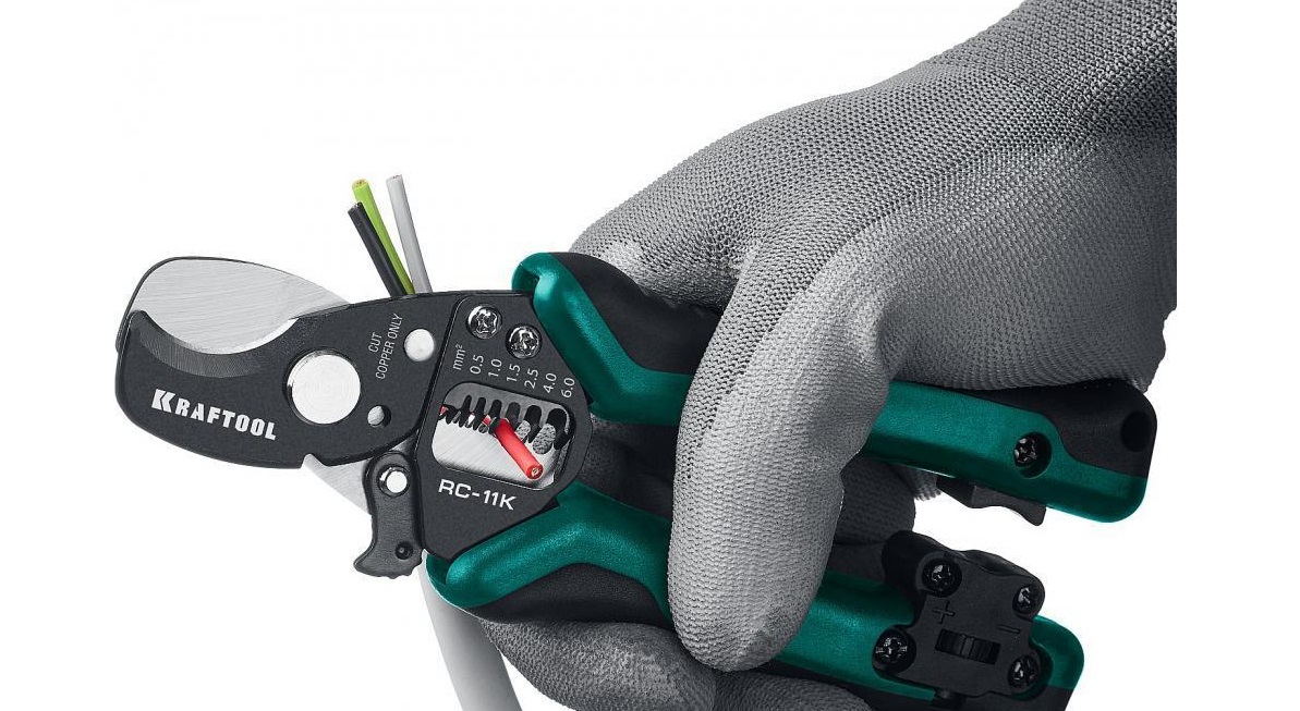 Кабелерез KRAFTOOL KSF-25V 23334-25V, предназначен для резки небронированного одножильного и многожильного кабеля из цветных металлов без деформации и замятия краев.