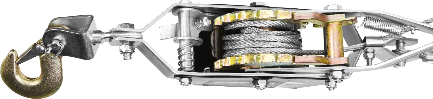 Крюки изготовлены из специальной углеродистой стали и закаленыНезамений помощник на бездорожье, а также при строительстве или ремонте, когда необходимо переместить тяжелый груз-Тяговое усилие: 2 т
