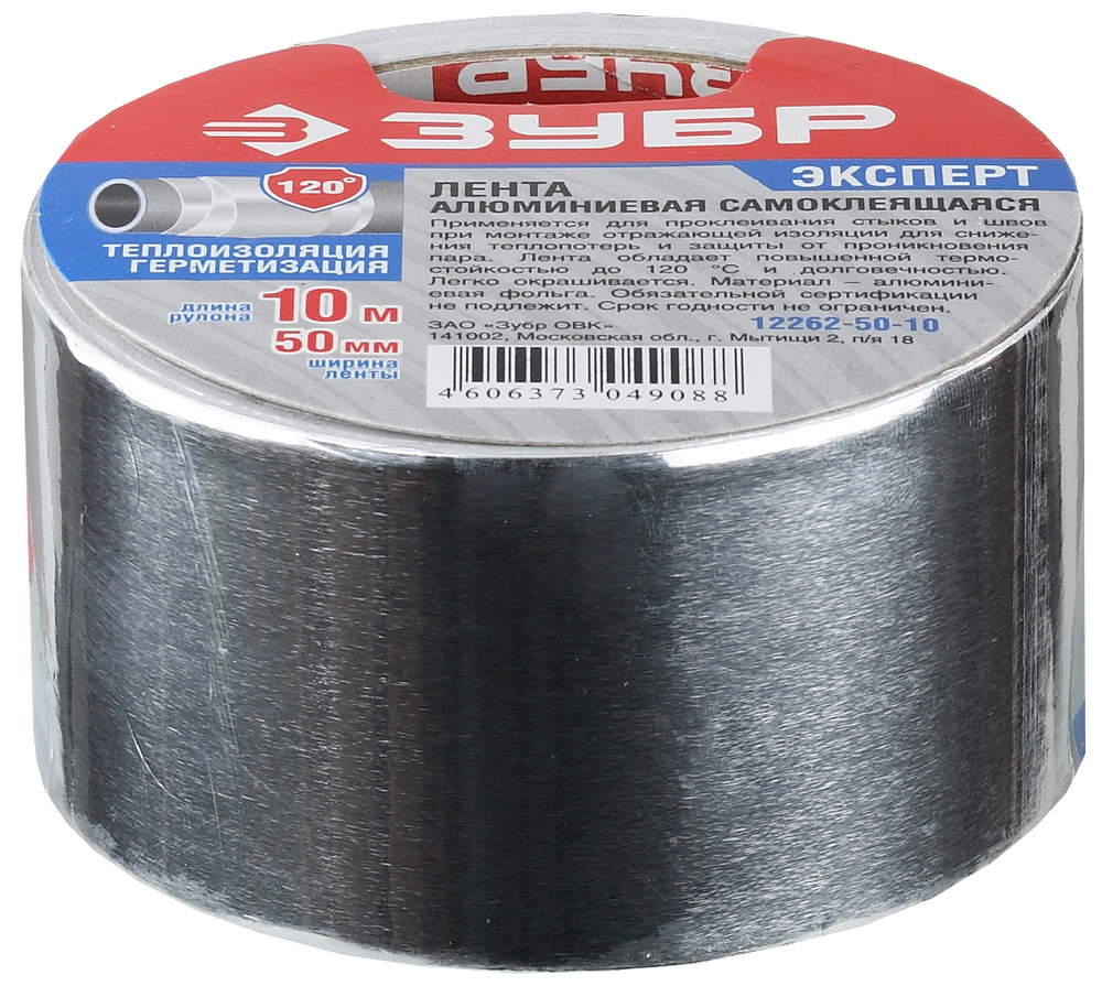 Лента ЗУБР "ЭКСПЕРТ" клеящая алюминиевая, 50мм х 10м - 12262-50-10