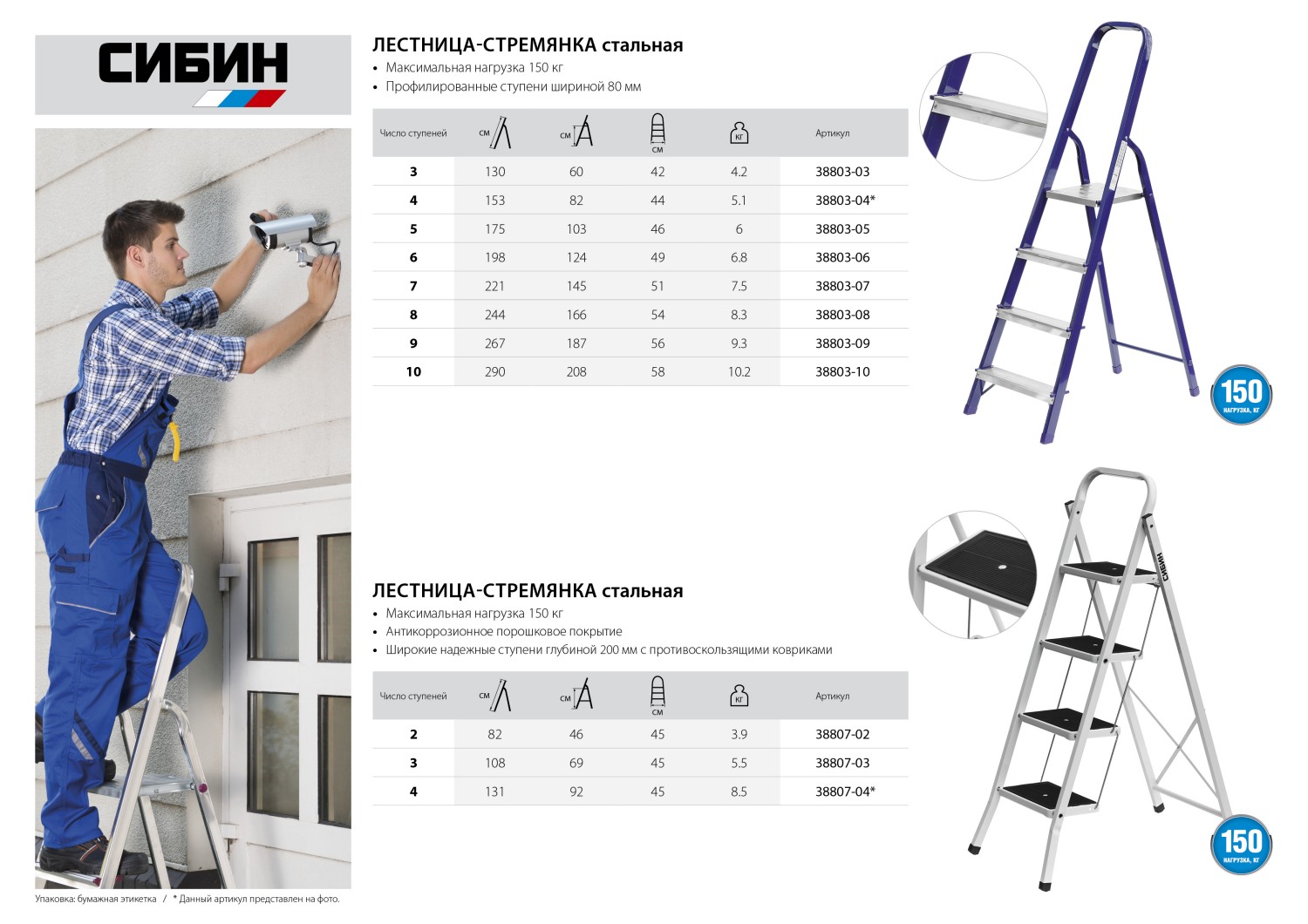 Лестница-стремянка СИБИН стальная, 3 ступени, 60 см - 38803-03
