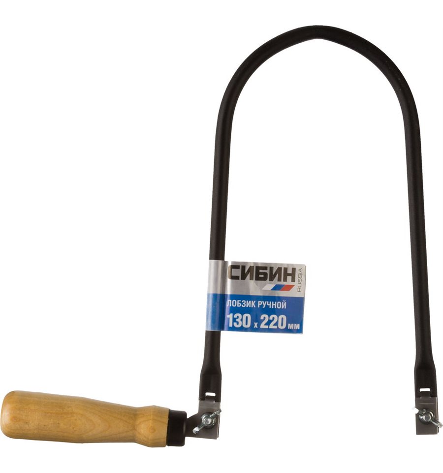 Может применяться для фигурного пиления и для пиления в труднодоступных местахРучной лобзик Сибин  – надежный инструмент для раскроя гипсокартонных листов, а также фигурного реза различных материалов.-Длина полотна: 130 мм