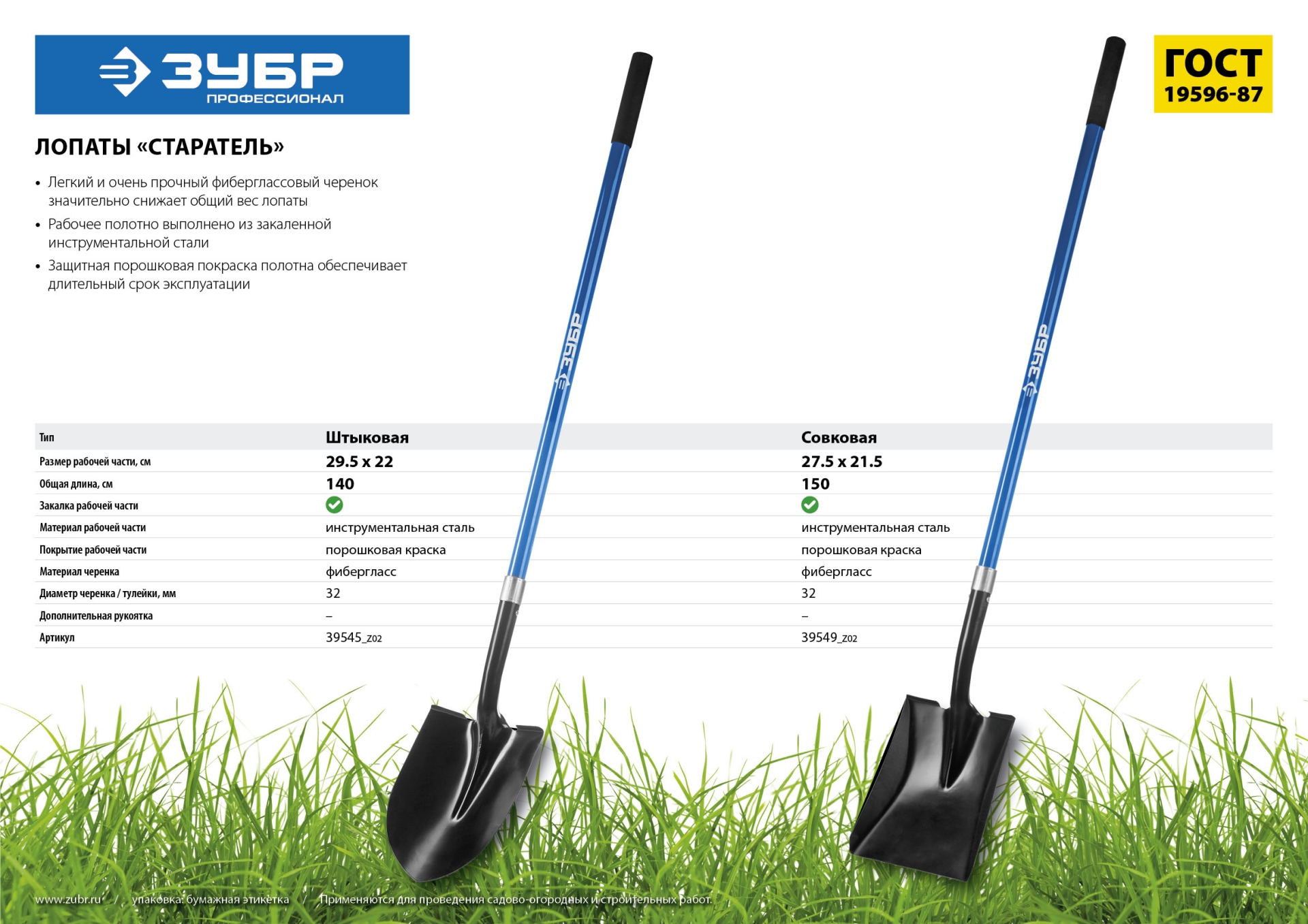 Лопата "СТАРАТЕЛЬ" совковая, фиберглассовый черенок, ЗУБР Профессионал - 39549_z02