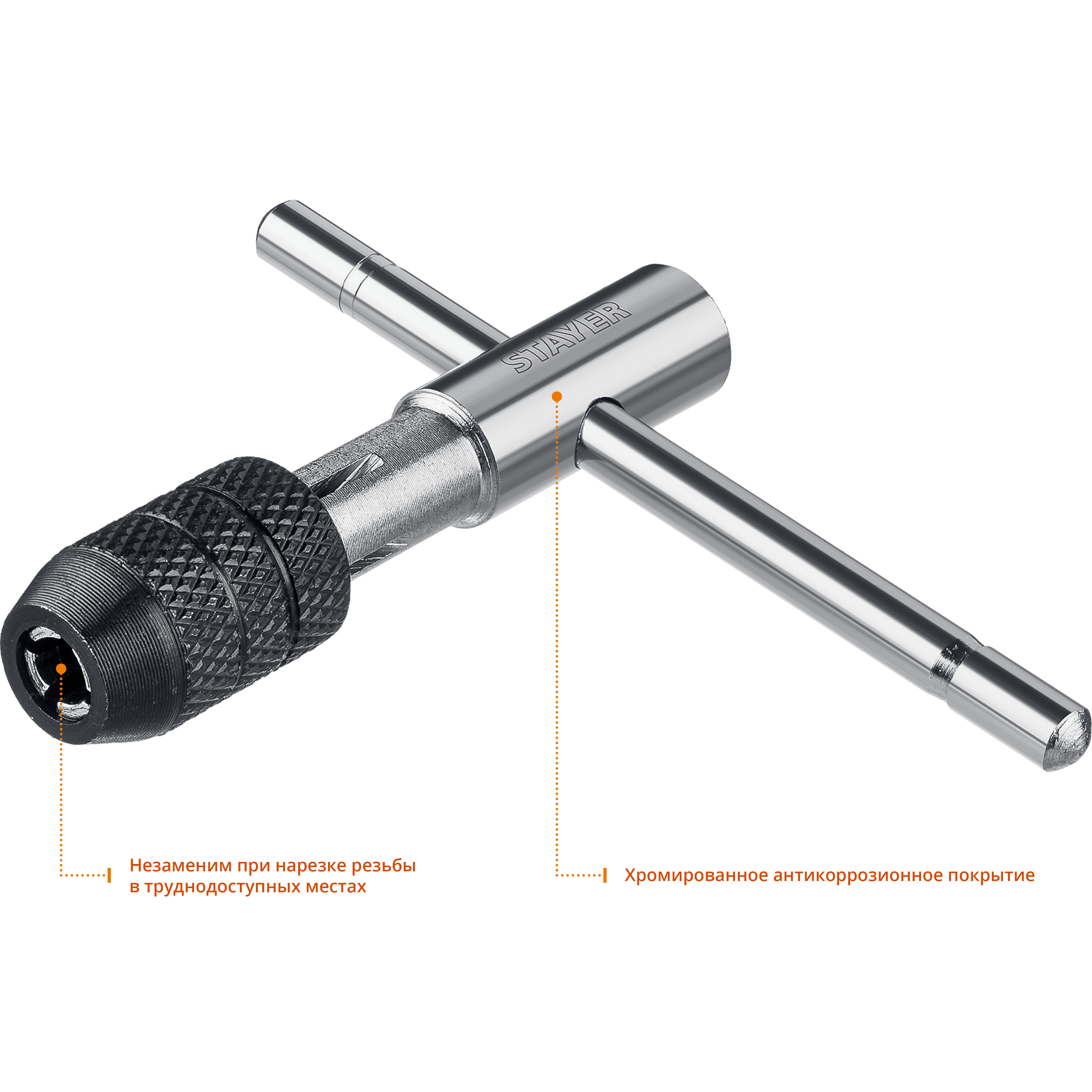 Метчикодержатель STAYER 28039-T2_z01, предназначен для жесткой фиксации метчиков при нарезании резьбы вручную.