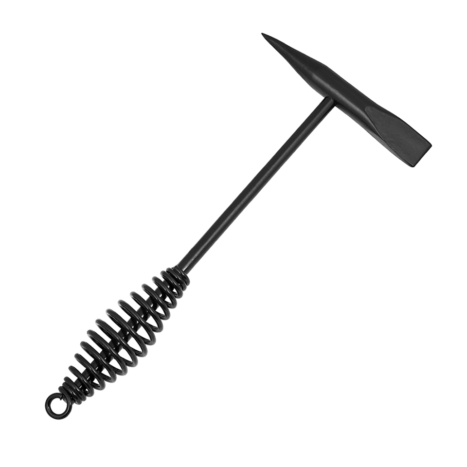 Шлакобойный молоток оснащен двусторонней головкой, где с одной стороны – зубило, с другой – острое жало для удаления шлака в труднодоступных местах. Молоток снабжен пружинной ручкой для смягчения отдачи в руку во время работы. На конце рукоятки расположена петля для удобного хранения молотка на поясе спецодежды.