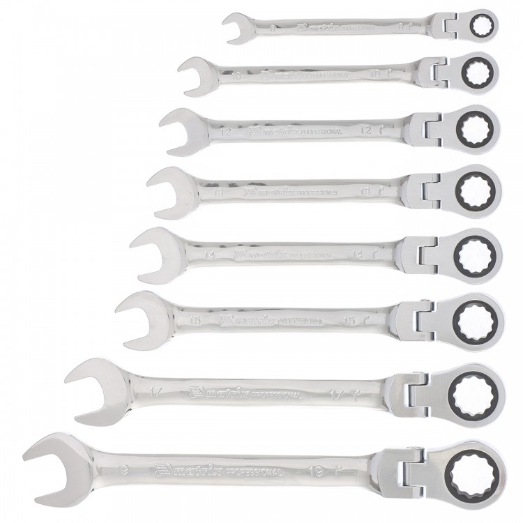 Набор ключей комбинированных, трещеточных шарнирных 8шт.// Matrix - 14898