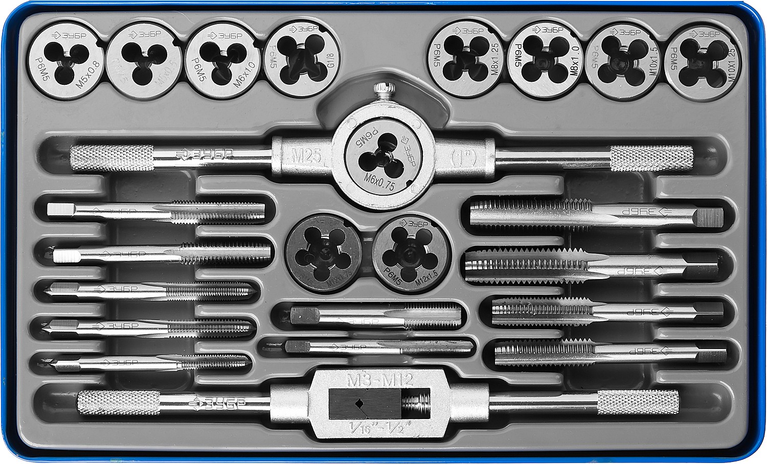 Набор метчиков и плашек ЗУБР "ПРОФЕССИОНАЛ", сталь Р6М5, 24 предмета - 28110-H24