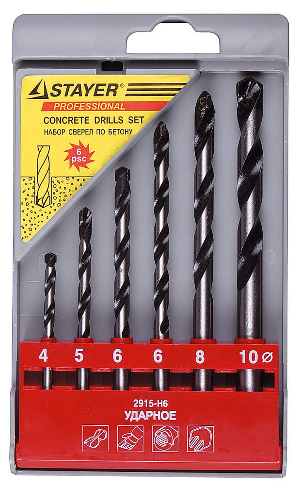 Набор сверл по бетону, ударные: 4, 5, 6, 6, 8, 10мм, STAYER "PROFESSIONAL" 6шт - 2915-H6