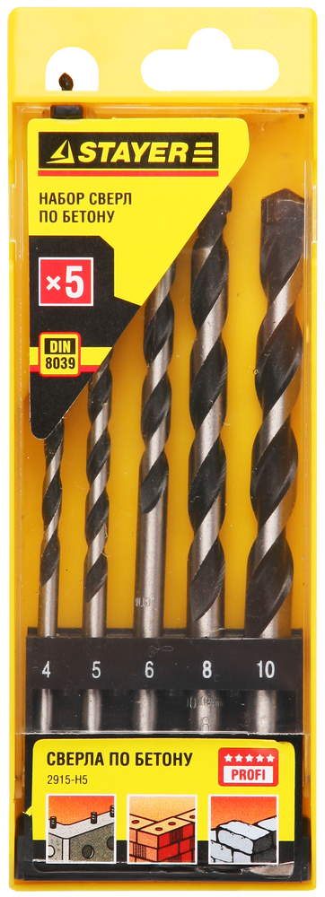 Набор сверл по бетону, ударные: 4, 5, 6, 8, 10мм, STAYER "PROFESSIONAL" 5шт - 2915-H5