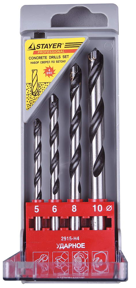 Набор сверл по бетону, ударные: 5, 6, 8, 10мм, STAYER "PROFESSIONAL" 4шт - 2915-H4