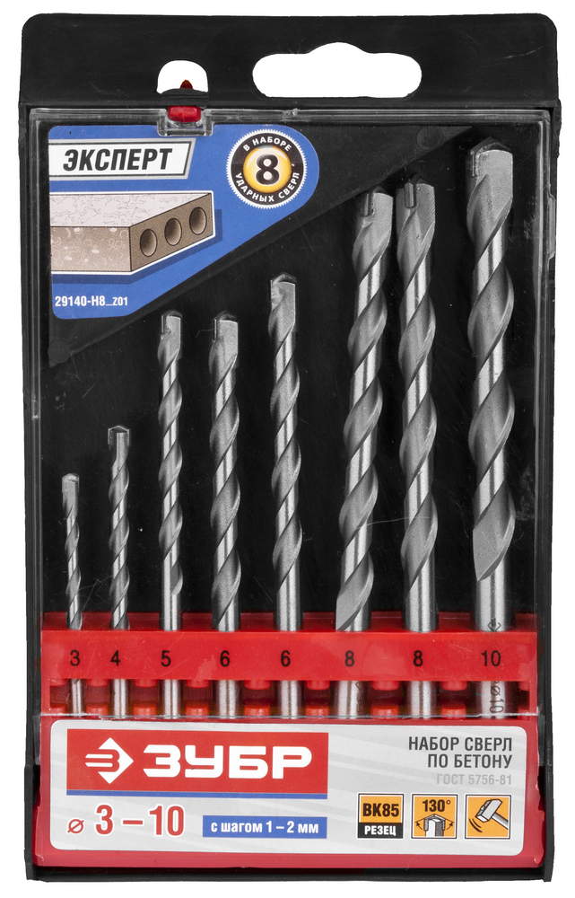 Набор сверл по бетону ударные "ЭКСПЕРТ", 3-4-5-6-6-8-8-10 мм, пластиковый бокс, ЗУБР 8шт - 29140-H8_z01